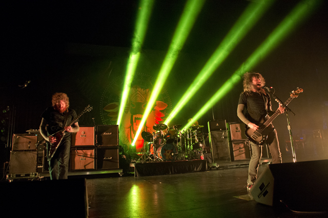 An unholy trinity of Opeth, Mastodon and Ghost descended upon the Gibson Amphitheater for an evening of progressive and theatrical metal. Opeth are touring behind their latest album Heritage while Mastodon (who recently covered Feist) are promoting The Hunter. Those who arrived early basked in the pure evil of Ghost who rocked and shocked the crowd. Check out the pictures above and the setlists below.