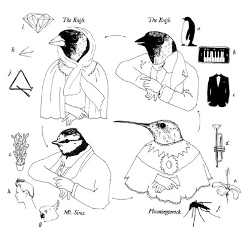 Over eleven minutes, the Knife introduce their most recent costume with "Colouring The Pigeon," the first sounds from their operatic composition Tomorrow, In A Year, composed in collaboration with Mt. Sims and Planningtorock. The piece was commissioned by Hotel Pro Forma, to accompany the Danish performance art group's opera based on Charles Darwin's On The Origin Of The Species. Which works out, because Karin and Olof were already all about birds anyway. "Pigeons" is a master blast -- it's less obviously electronic than the Knife of the naughts, freely incorporating operatic elements as per the assignment -- strings, bel canto vocalisms -- but as soon as Karin jumps in after the hockety, harmonized vocal intro, and the various, sublimely eerie instrumental arpeggios color the remains, the Dreijer signature is bold on this one, even if it's on a mask geared for a different sort of theater. This is a big one, must-download: