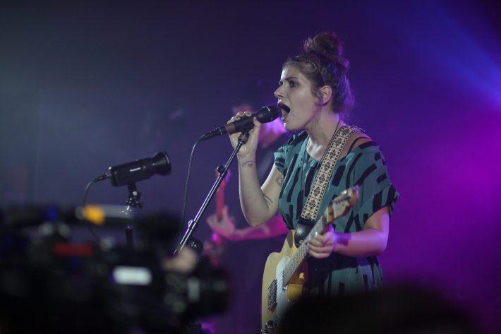 There are perhaps weirder things than seeing two bands play in an indoor bike park (something like an indoor skate park, but made for mountain bikes) super early on a Wednesday night, but it’s hard to imagine anything hotter. By the time Best Coast took the stage to play a short, hits-packed set, it was approximately two million degrees inside the venue (according to the guy next to me who wowed his friends by pouring icy cold vitaminwater over his own head). Temperature aside, Bethany Cosentino and co. played a super tight set that showcased both new songs from The Only Place and older tracks like “When I’m With You” and “Boyfriend.” Having seen the band many times over its still relatively short career, it’s truly impressive to see what a formidable live act Best Coast has become. Cosentino’s voice -- which can be a little one-note on record -- is surprisingly powerful live and months of touring have provided the band’s most wistful songs with a surprising punch. When Cosentino made mention of the fact that she used to be an intern at The FADER, the tepid audience response prompted her to say “You guys clearly don’t give two fucks about that.” A question about whether anyone in Portland actually rides bikes or not, however, drew an enthusiastic response. Go figure.