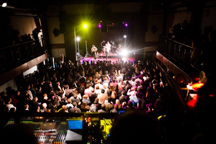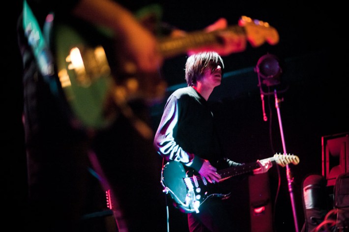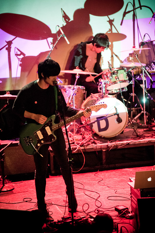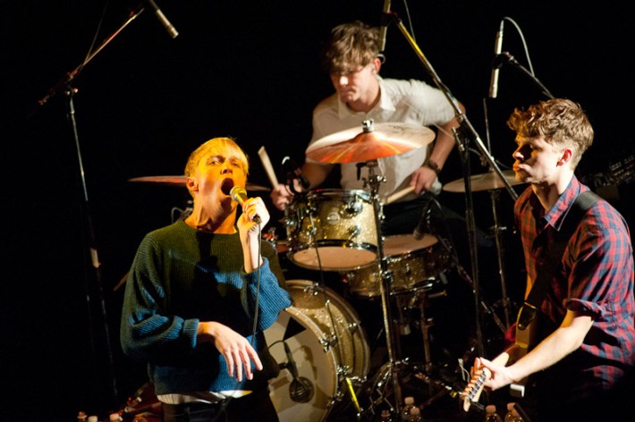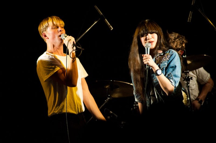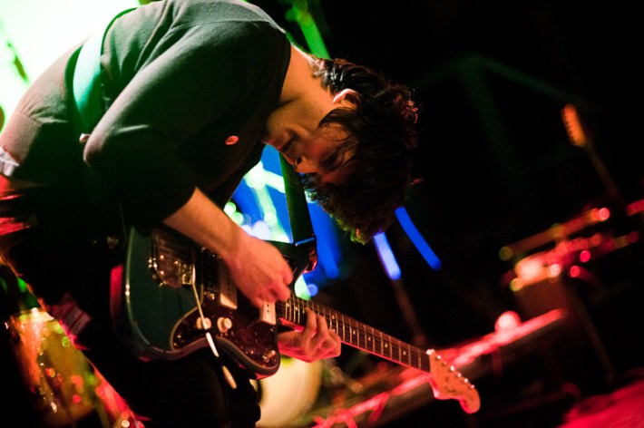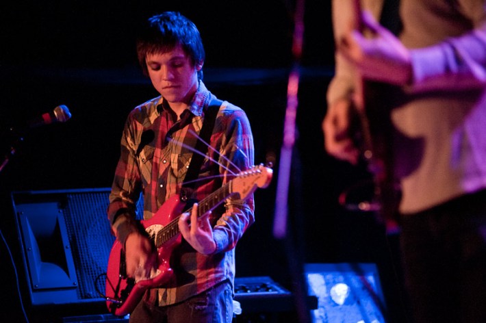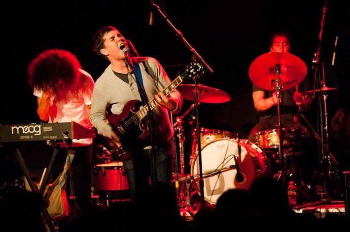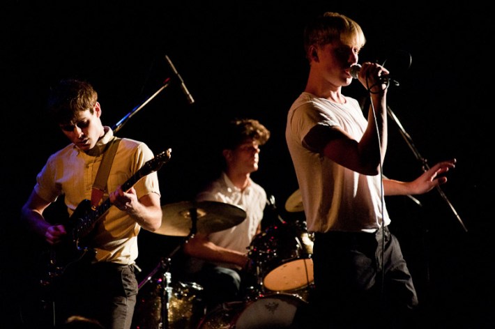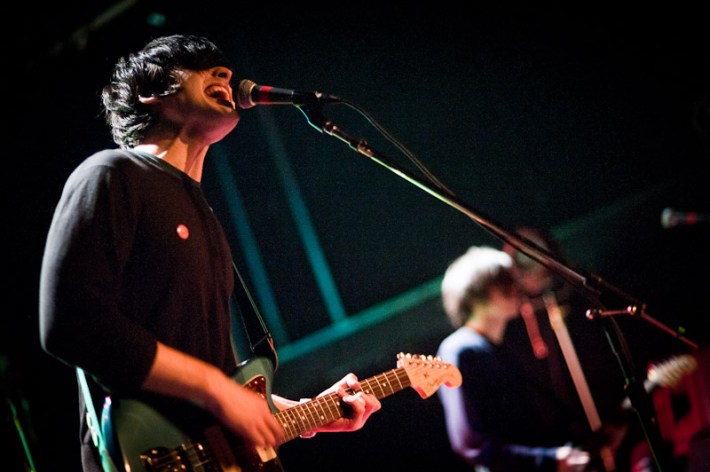 Surfer Blood. As far as indie rock debut LPs go, this is about as good as it's going to get in 2K10. These are dudes that will toss off a Neutral Milk Hotel cover without even bothering to unslouch on the couch, slack but properly studied, like the jams that populate their ace Astro Coast. Last night they played a triple bill at Bowery, alongside the much blogged Drums (joined by the Pains Of Being Pure At Heart's Peggy Wang, for extra blogpower) and early opener the Depreciation Guild. The show seemed to mildly let down most who've reported back, combined remarks of the lineup including being pretty good, or looking tired, or nervous, or too much like the Cobra Kai from Karate Kid. While you figure which bit fit whom best, have a pass at Ryan Muir's always ace photos.