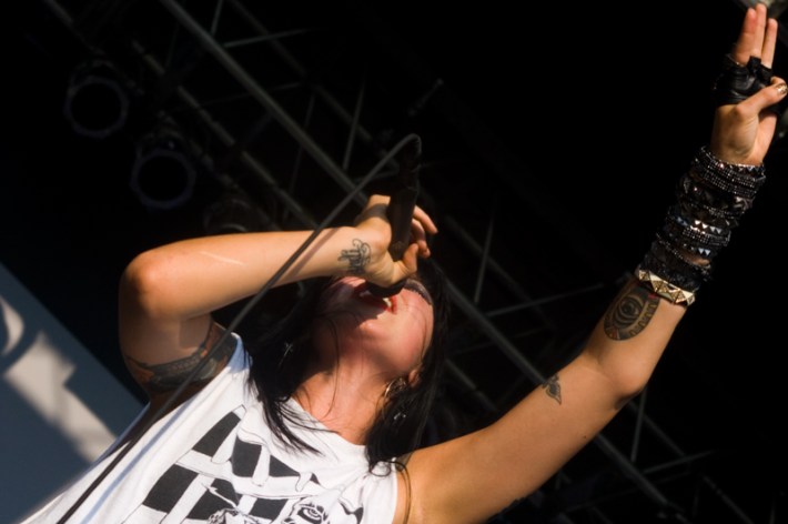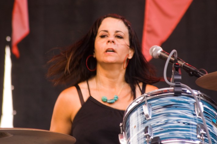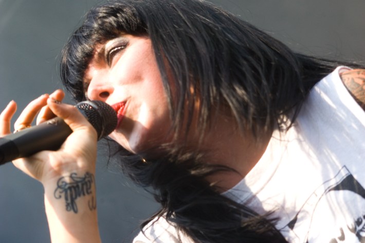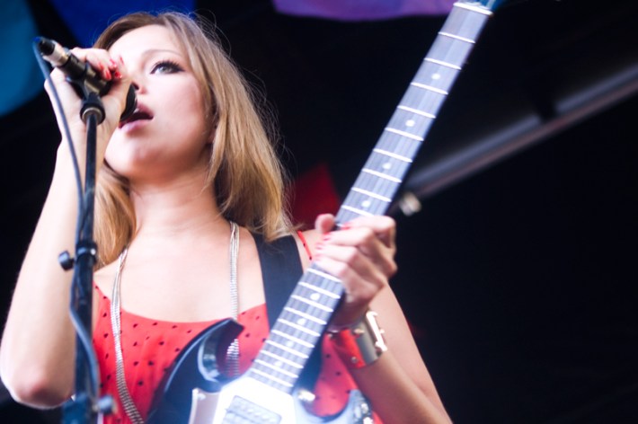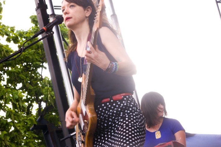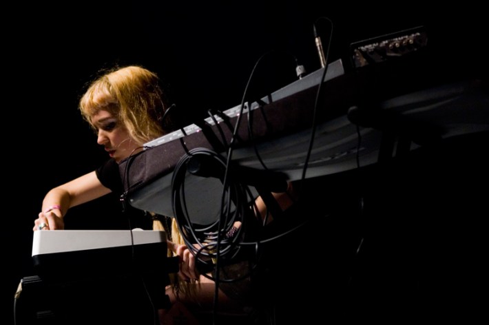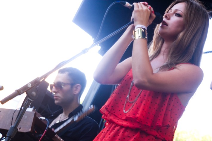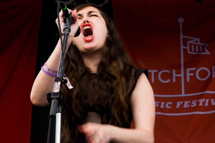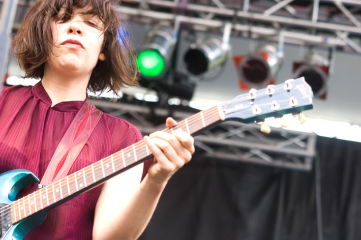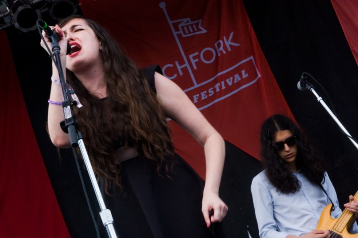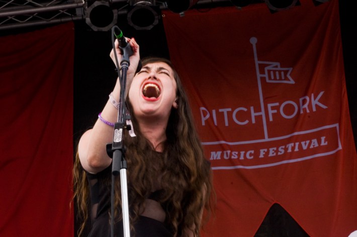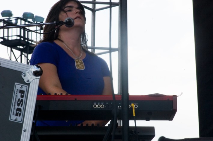 At ginormous festivals like Bonnaroo and Lollapalooza, it's pretty tough to craft a narrative -- when there's something like 200 bands playing over a weekend, it's next to impossible to really sew a singular thread through the weekend's performances. Pitchfork Music Festival is much smaller -- 45 bands in three days -- so, it's a lot easier to derive the daily theme. And while Saturday brought forth another occurrence of Friday's soaking, poncho-industry-fueling rainstorms, Saturday's lineup also featured a few tack-worthy talking points, with Grimes going head to head with Godspeed! You Black Emperor, Flying Lotus and Sleigh Bells catering to the youth's culture's unquenchable thirst for electronic music, and more understated, but brilliant, acts Nicolaas Jaar and Chromatics playing to crowds larger than they are normally accustomed. Check out Carmelo Espanola's photos up top and read more about Saturday below.