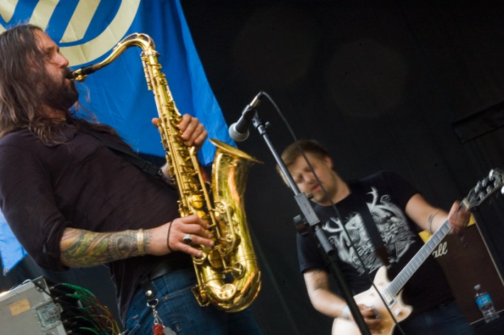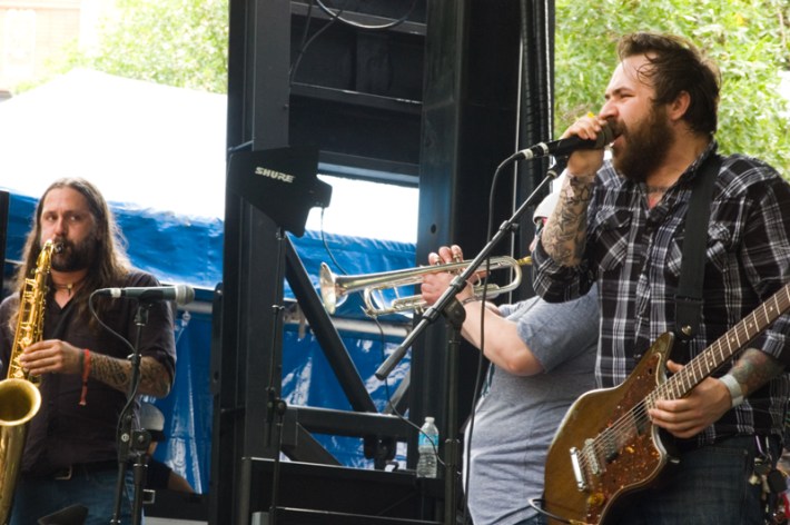 As it was growing closer to 8:30 when G!YBE and Grimes were set to perform, the grounds very much seemed like a two-way thoroughfare with people in stuffed-animal backpacks going one way, and older fans, several with toddlers in noise-cancelling-headphones, going the other (we'll let you do the work there). Last year's festival saw venerable acts like Superchunk and Guided By Voices stand out among their younger, less-experienced peers. One could certainly argue that those bands have a lot more at stake -- Guided By Voices eventually used the momentum from that performance (and others) to successfully tour again and record a new album. With respect to that theory, Godspeed! You Black Emperor sounded pristine, the audience along for every step of the group's entrancing, dark build. But across the field, you could hear peals of Grimes, who was charming her way through one of her best performances ever, complete with Grimes-look-alike dancers and a more fully-wrought live setup and sound thanks to help from pal Blood Diamonds. When her set ended, though, Godspeed! was entering their final movement, and together we went into the darkness.