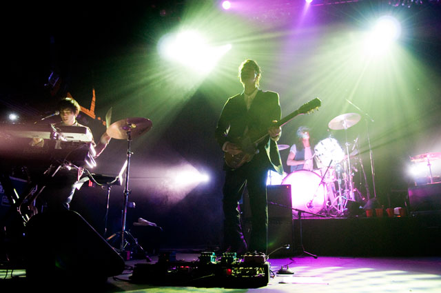 The band at his back was tight, the material was almost exclusively from his solo record save a few covers. One being Kings Of Leon's "Velvet Snow," which is a bit like Eddie Vedder covering Creed but hey, a little something for the midtown bros (who were demonstrably psyched). More powerfully received was the "cover" of the Strokes' "I'll Try Anything Once." The kids for their part jumped and danced and spat back most of Julian's Phrazes word for word, but it was the response to that Strokes tune that put shit in focus: People want LP4. Which, by the sound of that New York article, finally has some real momentum. His voice sounded great, he looked the part, and don't forget how savvy this dude is, right down to his choice for openers. As we know, his tastes are in line with ours, so inviting Tanlines and Telepathe to open was basically paying homage to his personal playlist. But also, while they're dope acts capable of stellar live sets -- the last time I saw Telepathe they conjured stormclouds at All Points West; the last time I saw Tanlines they whipped Market Hotel into a chilled out dance party -- they're also just duos, trading largely in synthetic beats. They made Julian look good on paper, and better in person. No two-piece set up behind a table of laptops is going to steal thunder from a sextet composed of monster-players looking like they were cherry-picked off Bedford Ave.