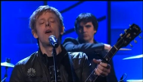 Spoon self-produced Transference and while there's some studio trickery at the heart of some of its arrangements,"Written In Reverse" (and maybe "Mystery Zone") came out of the gates as an example of Spoon being Spoon, knocking out a taut and rhythmic rocker, uncluttered production in service of a swaggering hook. A logical choice then for their Tonight Show closeup last night, the band entering NBC's Burbank studio/warzone with some lyrics closer to Conan's heart than he may have realized: "No nothin' was planned / You just can't help yourself / Some people are so easily shuffled and dealt / If there's only one of us you truly felt ... I'm not standing here." Not for long, anyway.