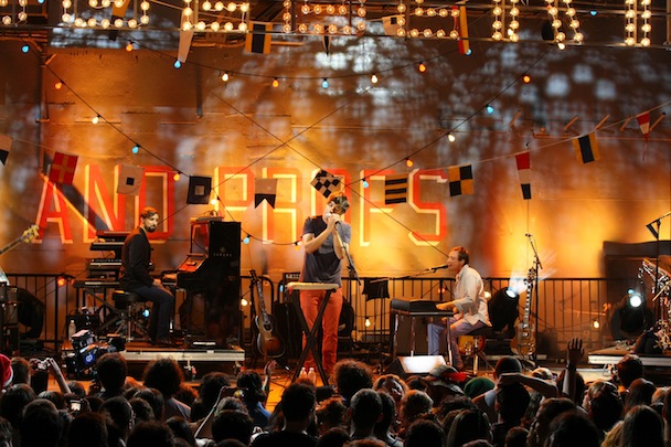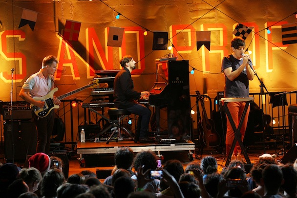 Last night was Grizzly Bear's time to shine as part of Stephen Colbert's StePhest Colbchella '012 RocktAugustfest, and the group showed up to play three songs. Also, they did a highly entertaining interview with Stephen aboard the Intrepid, so don't miss that. Watch performances of "Two Weeks," "Sleeping Ute," "Yet Again" and the interview below.