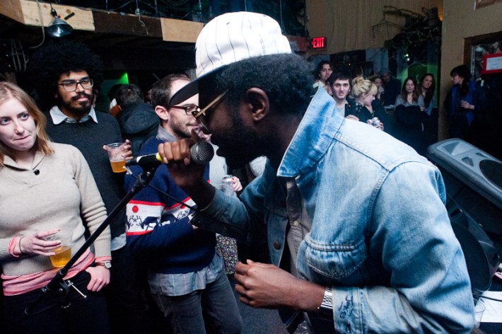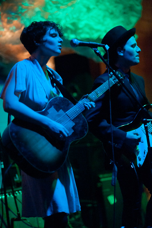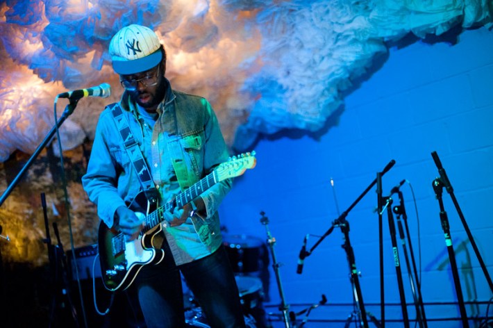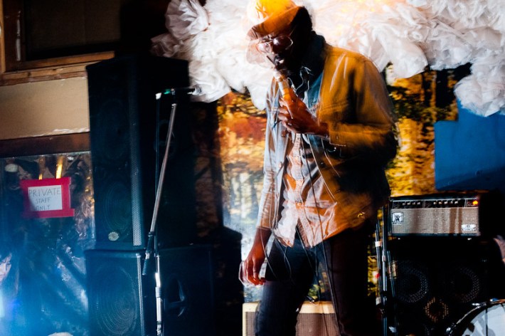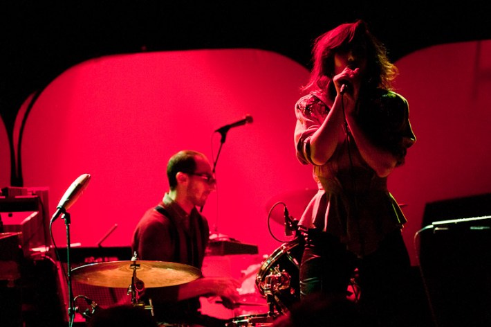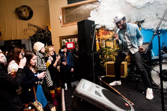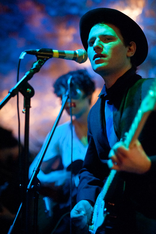 Also not without promise though without any cohesive sense of identity was Twin Shadow, who had a minor blog hit last week with "Castles In The Snow" and apparently has little interest in sounding like it live. Where Can and Kraftwerk were his cited influences before, and chilly synths marked his MP3, Twin Shadow's (very first) live show was more along the lines of guitar rock with danceable rhythms and one slow jam. Nothing krauty about it, but there's still time before that debut LP comes out and who knows what happens between now and then. One thing about Brooklyn -- the sets and costumes are changing all the time.