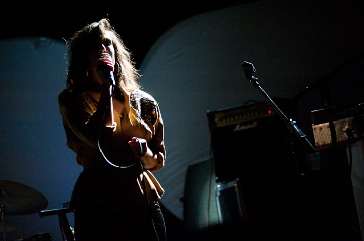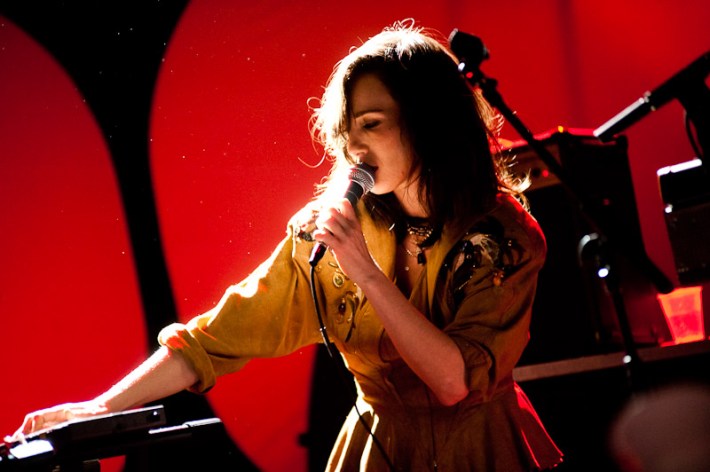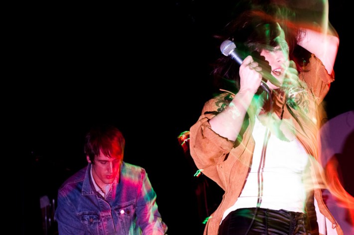 They were followed by the headlining Class Actress, who've emerged as the cream of the Terrible Records crop. Class Actress is principally Elizabeth Harper, a former folkie who's transformed into full-on synth-pop sexpot on the back of vintage synths, '80s dance beats by way of New Order and evocative, sighing hooks. There was a shoulder-padded pantsuit (blazer demurely disrobed), a cameo from Caroline of Chairlift, and at least three girls at my side who decided they'd undress while dancing too why not. They didn't know Class Actress before, but the songs from the ace Journal Of Ardency EP were inspiration enough. Elizabeth's using the keyboard as a stand-in for someone to dance with helped. Likely so.