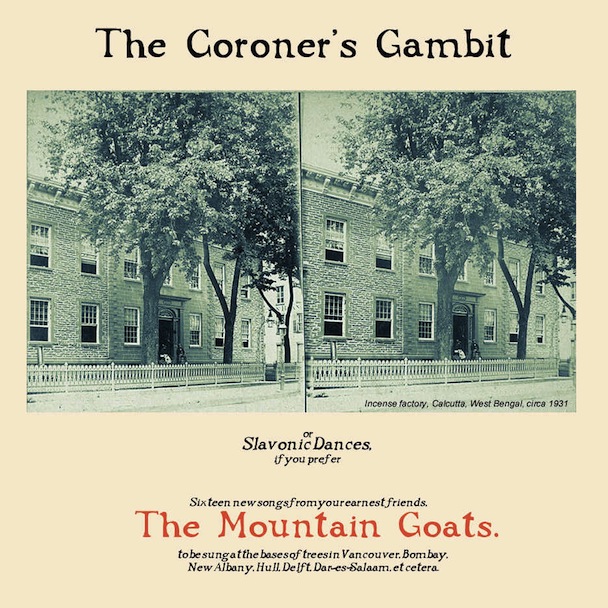 A sort of portent for those who checked out when Peter Hughes and Jon Wurster signed up, The Coroner's Gambit approximates a full-band lineup on a few tracks, most notably "Onions" and "Baboon." To make matters worse, sometimes Darnielle uses a four-track. Lo-fi freaks can roll around in "Family Happiness," whose red-line strumming approximates the feeling of a slow lashing from jagged windchimes. On this, his fifth record, one can hear him finding his vocal footing. His lines on "Bluejays and Cardinals" end in friendly melodic waves, and while the harmonica in "The Alphonse Mambo" hasn't aged well, John navigates an ambitious topline, making it to the top of his range without a misstep.