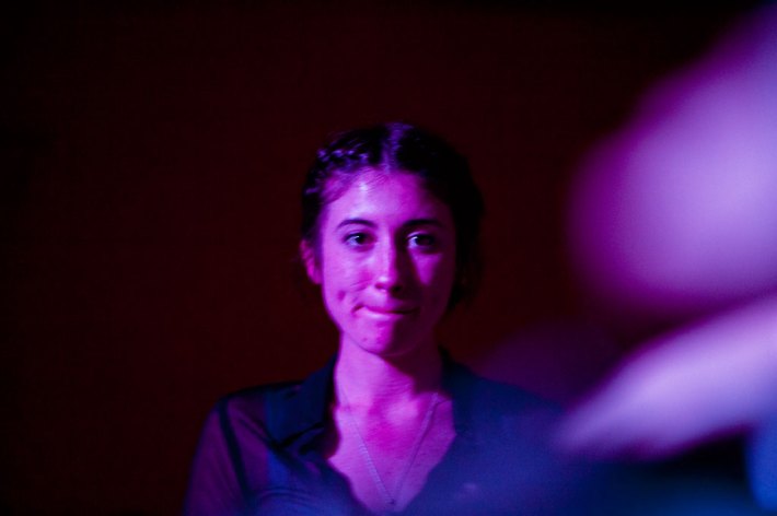 For those of us in the indie-rock press, Marnie Stern is something of a beloved figure, a top-notch shredder with a potty mouth, a wicked sense of humor, and a gift for writing arty and oblique pop songs. We all wish we were her friends. So it was a bit of a shock to hear scattered boos and general crowd indifference every time she's finish one of her pyrotechnic sideways-pop wig-outs. I can understand some of that indifference; she seemed more comfortable, after all, talking about her vagina in between songs than attempting to sing while executing mind-melting finger-tap solos during those songs. Stern is a technician, after all, and what she does is hard enough work that it's hard to give much to the audience beyond its simple execution. Still, she, and her band's accomplished clatter, deserved a whole lot better than the weird stony-faced silence that this crowd, for whatever reason, gave her. -- Tom