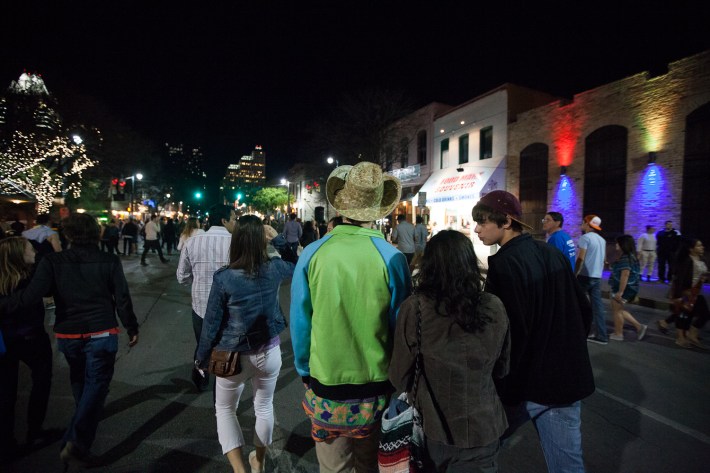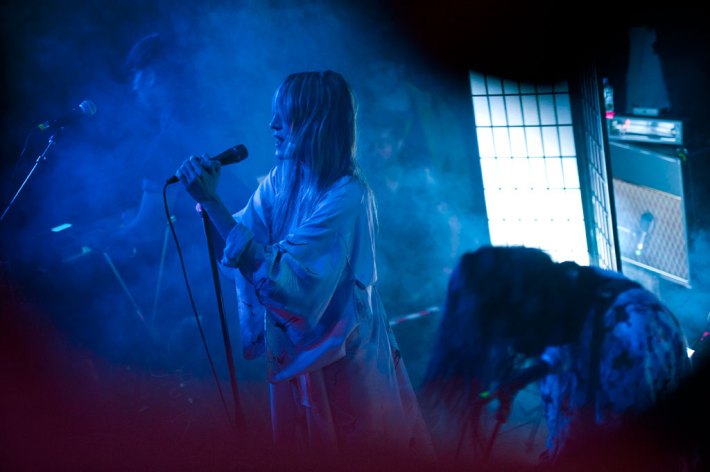 Meanwhile, over at the Mohawk's Pitchfork showcase, I did my best to catch the Nashville singer-songwriter Torres, but that was not to be. The crowd had filled up the Mohawk's indoor room completely, forcing gawkers like me to crane necks and cherish stray glimpses of stage-lights glinting off drums. Torres sounded pretty good, but I didn't even catch the briefest glance of her face. Instead, I watched the TV mounted next to the adjacent bar, which happened to be showing the 2009 straight-to-video Scott Adkins action vehicle Ninja, which actually matched up surprisingly well with Torres's music. Still, I clearly was not doing SXSW right. Fortunately, things righted themselves a bit as the night wore on.