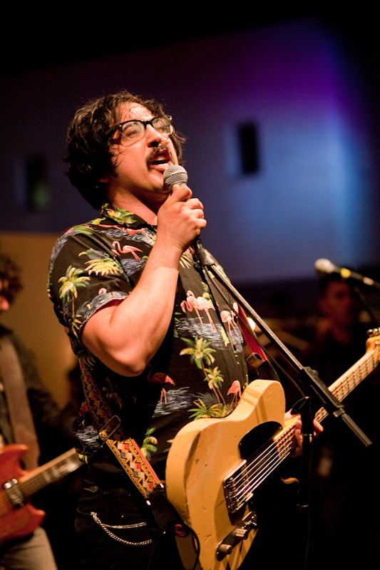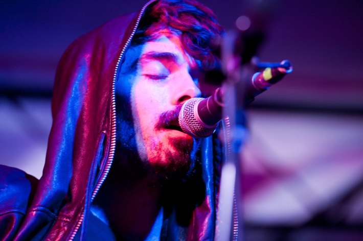 Much of the throng who filled up Viceland for Japandroids had dissipated by the time of Divine Fits' delayed start, which is a testament to how underappreciated this particular supergroup really is. But Spoon frontman Britt Daniel is still enough of a local Austin hero that he still got a whoop from the remaining crowd just for showing his face, and he apparently commands enough respect from Austin soundmen that the Viceland volume, appallingly low for Japandroids and Wavves, got jacked up to a half-respectable volume when he touched the stage. Daniel is one of indie rock's most engaging frontmen, but in Divine Fits, he seems to relish sharing bandleader duties with Dan Boeckner. And the Boeckner/Daniel dynamic is a fascinating one, with Daniel all suave assurance and Boeckner a way more volatile presence, with his jailhouse-looking tattoos and his ropy sinew. Boeckner and Daniel regularly switched off instruments, but the set's best moments came when Daniel busied himself holding down the rhythm section on bass and Boeckner let loose with his guitar, letting it rip and stab, never playing anything as drab as a hook.
