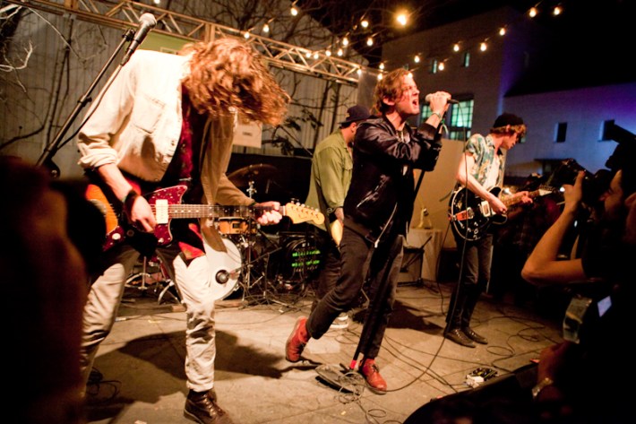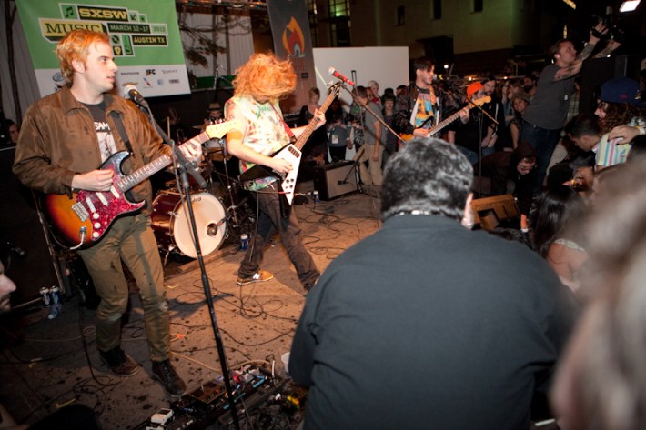 One song into Japandroids' set at the outdoor Viceland venue, frontman Brian King tore into the security staff, claiming they were sucking the life out of the show, and demanding they leave -- which they did, reluctantly. Maybe they were unsure about taking orders from a band when they'd been hired by the venue. Or maybe they realized the lethargy had nothing to do with their presence, but was instead the byproduct of an anaemic sound that evaporated into wan white noise several feet away from the PA. That's not a knock on Japandroids in general -- I've seen 'em numerous times, and been consistently blown away -- but at the chain-link fenced-in Viceland, not only was the sound bad enough to render the songs unintelligible and indistinguishable, I actually heard indoor-voice-volume conversations clearly above the music, to the extent that those conversations eventually drowned out the music completely. And I was 30 feet from the stage, if that. The band's frustration begat anger begat a manic, compressed energy; some game drunks up front followed suit, crowd-surfing and swaying atop the shoulders of boyfriends. Where amplification let them down, the band tried pure, natural screaming -- if King has any voice left for the remainder of Japandroids' SXSW sets, I'll be pretty surprised -- but it too was lost in the cool Austin air. -- Michael