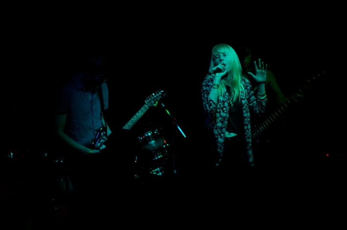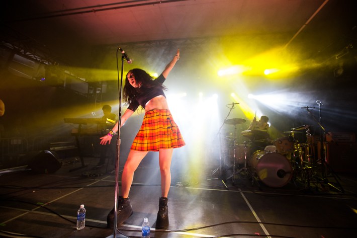 I loved Nü Sensae's fellow Vancouver DIY punk band White Lung even more. Here's the thing: Noisy, chaotic basement bands aren't supposed to project a sense of power and control. But all four members of White Lung, especially singer Mish Way, carry themselves like the coolest motherfuckers in the room. Their music is straight-ahead blitzkrieg post-hardcore, with razor-attack guitars and a rhythm section set on permanent gallop. But they've got hooks and melodies amid all that assault, and Way has figured out a way to throw way more personality than anyone could've thought possible. She's funny: "Do you like the band Merchandise? I love the band Merchandise! This is my impression of them: [Flutters hands] Whoooaaa!" She's also tough, making fun of the apparently godawful sound guy when all the other bands had publicly harrumphed about him. She's also, when the moment calls for it, intense and ferocious and vengeful. I'm terrible at making calls like this, and I don't want to jinx anything, but White Lung, who I obviously slept on for far too long, feel important, like harbingers of something changing for the better. They're the sort of band I want to take my daughter to see. -- Tom