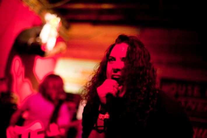 The former Stereogummer Brandon Stosuy, who set up Pitchfork's Show No Mercy party and who knows about these things, described the Dallas band Power Trip to me as something like Texas's version of Trash Talk. And it's true, on some level: Power Trip are a band who whip kids into a frenzy. They played the Mohawk's tiny indoor space right after Trash Talk got done tearing the outdoor one apart, and the second their first drum-crack sounded, the floor erupted into all-out war, which didn't really let up until they got done playing. And their music is as fast, chaotic, and generally brutal as Trash Talk's. But Power Trip also inject heavy doses of '80s speed metal -- tangible riffs played and breakneck speed, flying Vs playing cat-in-a-blender solos, a singer with a classic dirt-stache. I still haven't seen another circa-now band who can match Trash Talk for violent bedlam, but Power Trip come damn close, and that's a good thing. -- Tom
