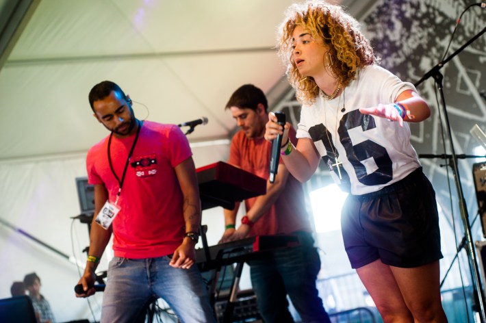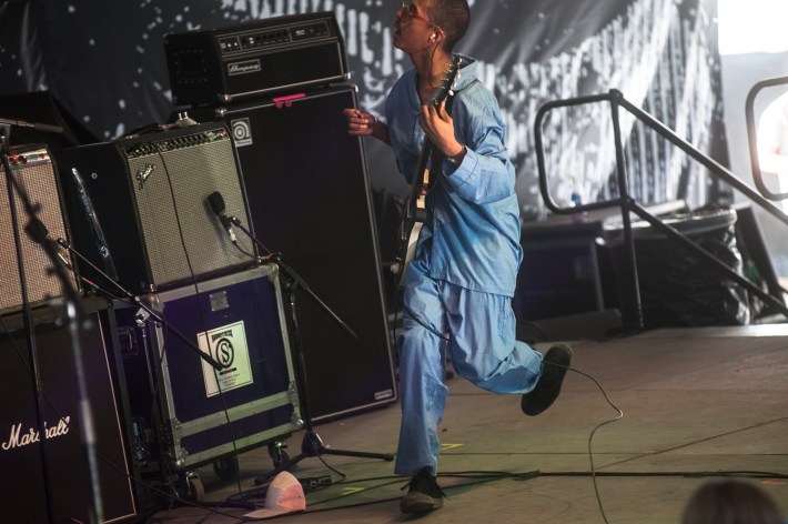 On his new mixtape Fly Zone, the New York rapper Le1f focused on the side of his music that animated "Wut," the internet-hit from last year. He's now making bangers, throwing his double-time purr all over horn-stabs and martial drum whomps. And live, he's a total dynamo, strutting and spinning and, a couple of songs in, letting out the blonde samurai topknot on his head to reveal blonde-braid hair extensions that pretty much reached the floor. (He spent the rest of the set whipping them around wildly.) And "Wut," it turns out, destroys even more when it's preceded by the helicopter intro from Noreaga's "Superthug." -- Tom