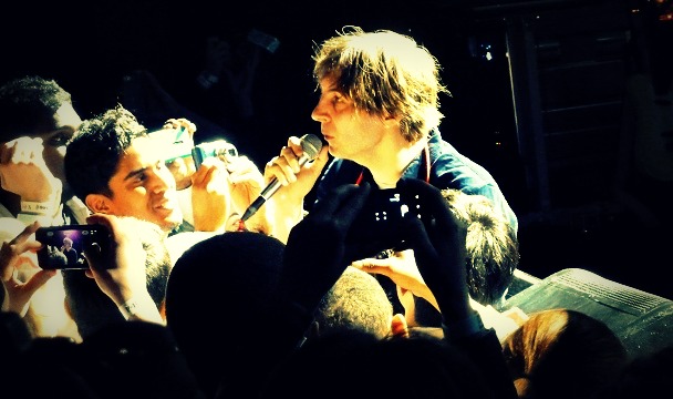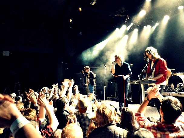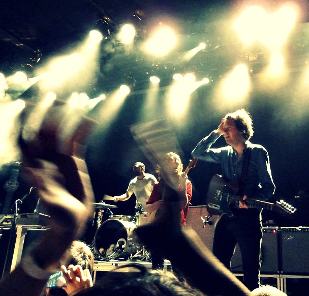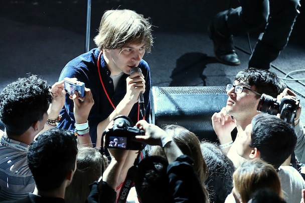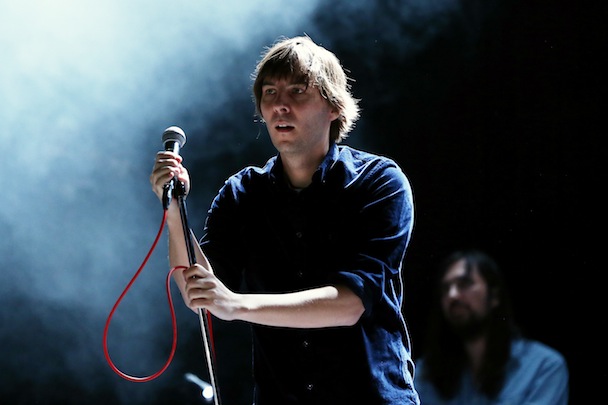 It was a little after 6 p.m. when Jeff Regan, program director for Sirius XM's Alt Nation channel, walked onto the stage at Brooklyn's Music Hall Of Williamsburg to introduce Phoenix -- and over the course of that announcement, he told the crowd to make noise, to sing along to the songs we knew. But beyond the occasional coherent line (or word), does anybody actually know Phoenix's lyrics? They're pretty unintelligible to begin with, and they have these weird ESL/stream-of-consciousness qualities that make them almost impossible to nail down. I mean, we all know the lyric "Lisztomania" -- and exactly when in the song of the same name it will arrive, and exactly how in that song it will be delivered -- but it's a beat, not a chorus; everything before and after that is as difficult to decipher and remember as the words of a book you read in a dream. They seem to be there, but as you try to make sense of them, they slip away, run like ink on china. You don't sing along to that; you mumble to the melody, you hope nobody can hear you.