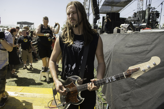 Young kids with early sets seemed to dominate a lot of the festival and it was no different for NYC's DIIV in the Mojave tent. Last month, lead singer Zachary Cole Smith publicly dismissed SXSW, citing all the corporate sponsorship and short-and too-frequent sets as a smokescreen for branding. Here, the advertising is fairly minimal and it's definitely the inverse of industry, a playground for people to dress up, reunite with festival friends, and shed real life for a weekend. Whether this is your bag or not, it was clear that DIIV were much happier here. The band played a strong and consistent set, Andrew Bailey offering up high-kicks during noodly riffs. Before closing with a vibrant rendition of "Doused," which had Cole rolling on the stage, they played a new song. Perhaps it's because they're named after "Sliver" B-side "Dive" or that Cole resembles a smooth-skinned, young Kurt Cobain, but they jettisoned their easy, breezy vibes for the new cut and it felt more indebted to Nirvana than they ever have.