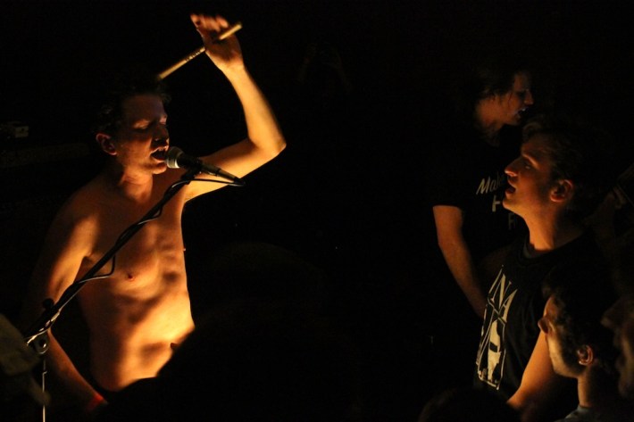 Dense too. Boston Hassle Fest 5 crammed 34 bands into that basement over two days, and as soon as one would finish, the next would immediately start in the next room, bringing a sort of growing momentum (and chaos) to the entire night. Even when things ended, the Fest moved down the block into a new space to continue things after hours. I came in on Friday to find one of Stereogum's 40 Best New Bands, Designer, already tearing the place apart, their frontman (shirtless and in sunglasses) being the most enthusiastic mosher in the pit. It was a good sign of just how wild things would get.