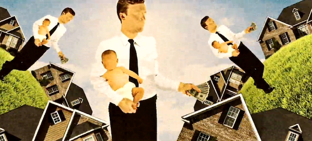 We heard "A State Of Mine" last year when Lou Barlow's seminal indie rock band Sebadoh released their first album in 14 years. Now you can watch the video for it, which acts like a kaleidoscope of nuclear family dread. The video, animated by Geoff Hoskinson, captures rows of identical babies, men mowing lawns, and raining dollar bills, achieving something almost uncomfortable in its pleasantness. Watch below.