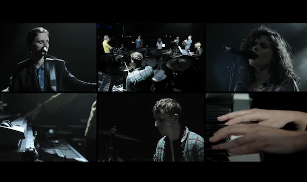 These New Puritans' 2013 LP Field Of Reeds is frequently compared to Talk Talk, in part because of the album's emotionally shattering and dense neoclassical explorations. Also, though, both bands inspire a similar assumption that their music would be impossible to recreate live. Talk Talk never bothered, and no one can be blamed for expecting the same of TNP. How do you perform songs live when the instrumentation includes gigantic swords clashing, melons being smashed, and an actual hawk? That's part of what makes this live video, released in anticipation of a few US live dates, so incredible -- they found a way. Below you can watch a live performance of Field Of Reeds' epic centerpiece, "V (Island Song)," displayed on six split screens to capture the entirety of what the band is doing. It's a performance that only generates more appreciation for the band. Watch it and check out the tour dates below.