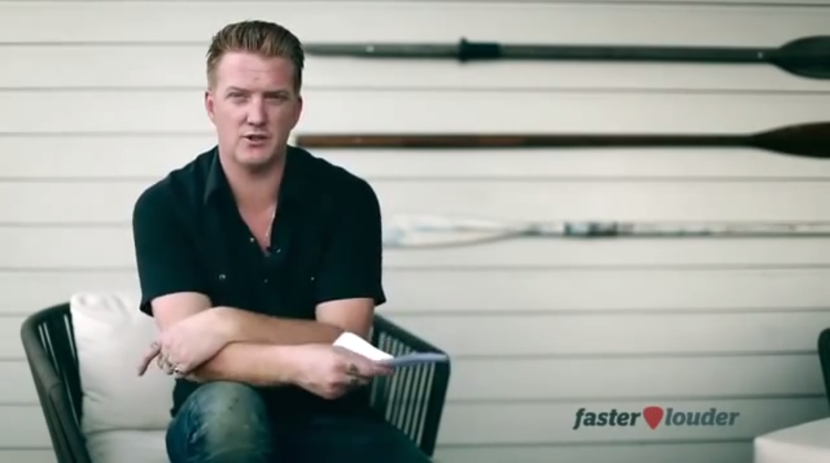 After Queens Of The Stone Age's Grammys-closing medley with Nine Inch Nails, Dave Grohl, and Lindsey Buckingham was cut short -- and after Queens Of The Stone Age lost Best Rock Performance to Imagine Dragons during the pre-telecast -- Homme told fans at a concert in Houston, "This next song is by Imagine Dragons... Fuck everything. Fuck the man. Fuck Imagine Dragons and fuck the Grammys." In a new video by Australian music site FasterLouder, Homme answered a fan question about the comments: "I'd play anywhere. I don’t care about the drama. I got misunderstood for something I said when I was reacting to someone in the audience recently. Not to mention I was really drunk."