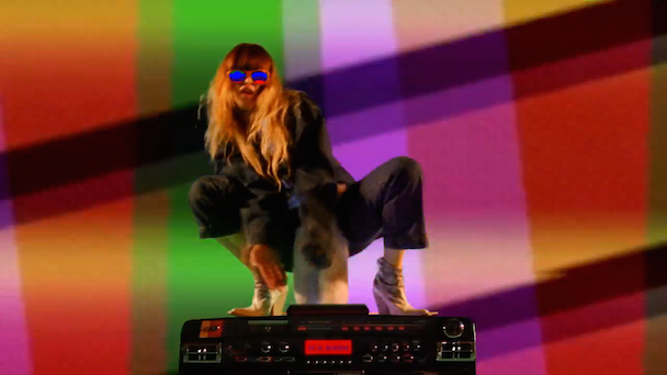 Just judging from the single art along with the actual music, if someone was going to make a music video out of Black Bananas' new song "Physical Emotions," it would need to be pretty ridiculous. Director M. Wartella definitely delivers with this visually loud clip that features Jennifer Herrema playing a magical boom box which then spawns a man not unlike some sort of funk genie. It's a good time and you can watch it below.