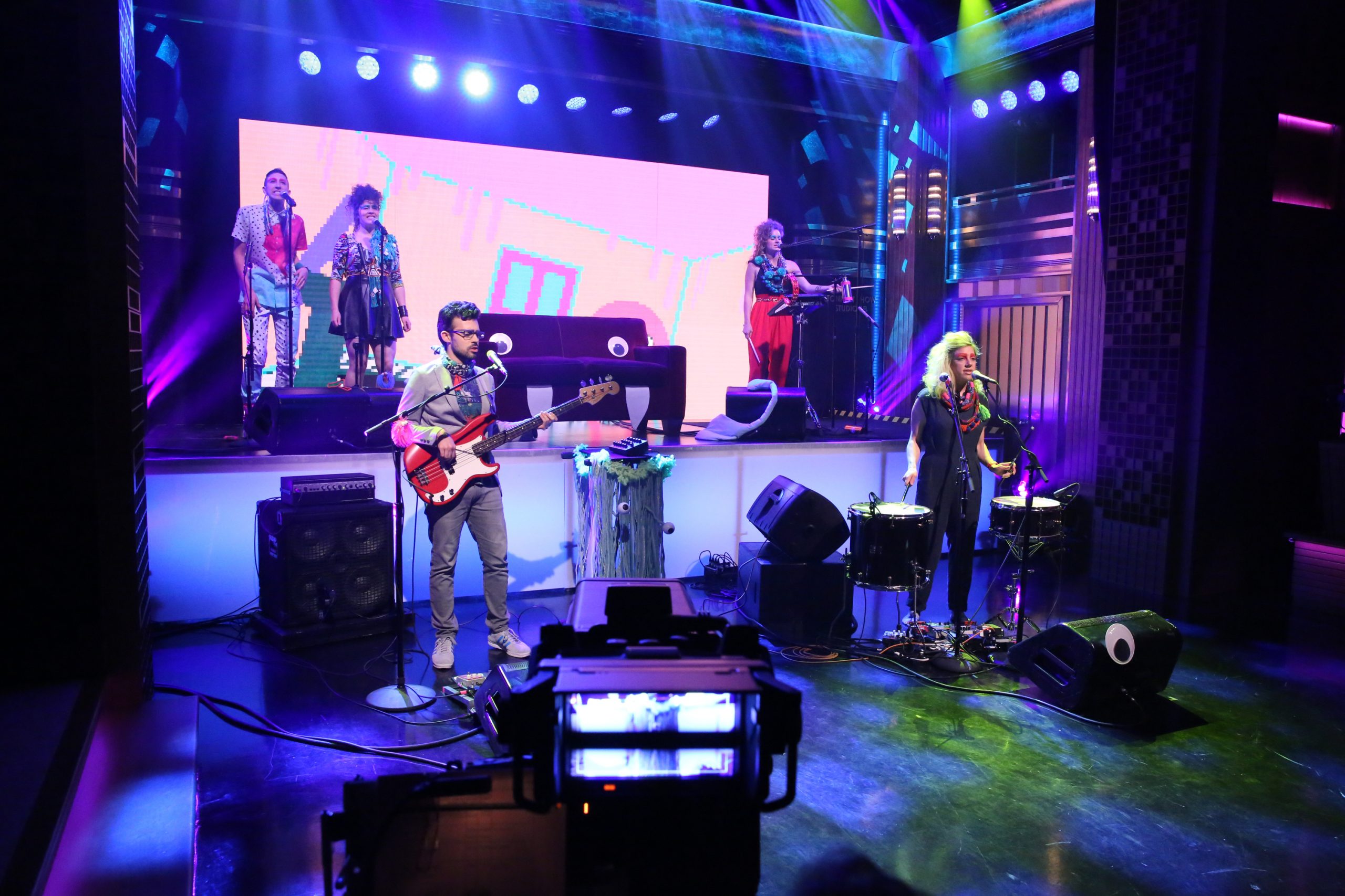 tUnE-yArDs' Nikki Nack came out this week, and last night Merrill Garbus and crew stopped by The Tonight Show to perform "Water Fountain" with the monster couch from the song's Pee-wee's Playhouse-inspired video. The Roots show up at the end. Watch a replay below.