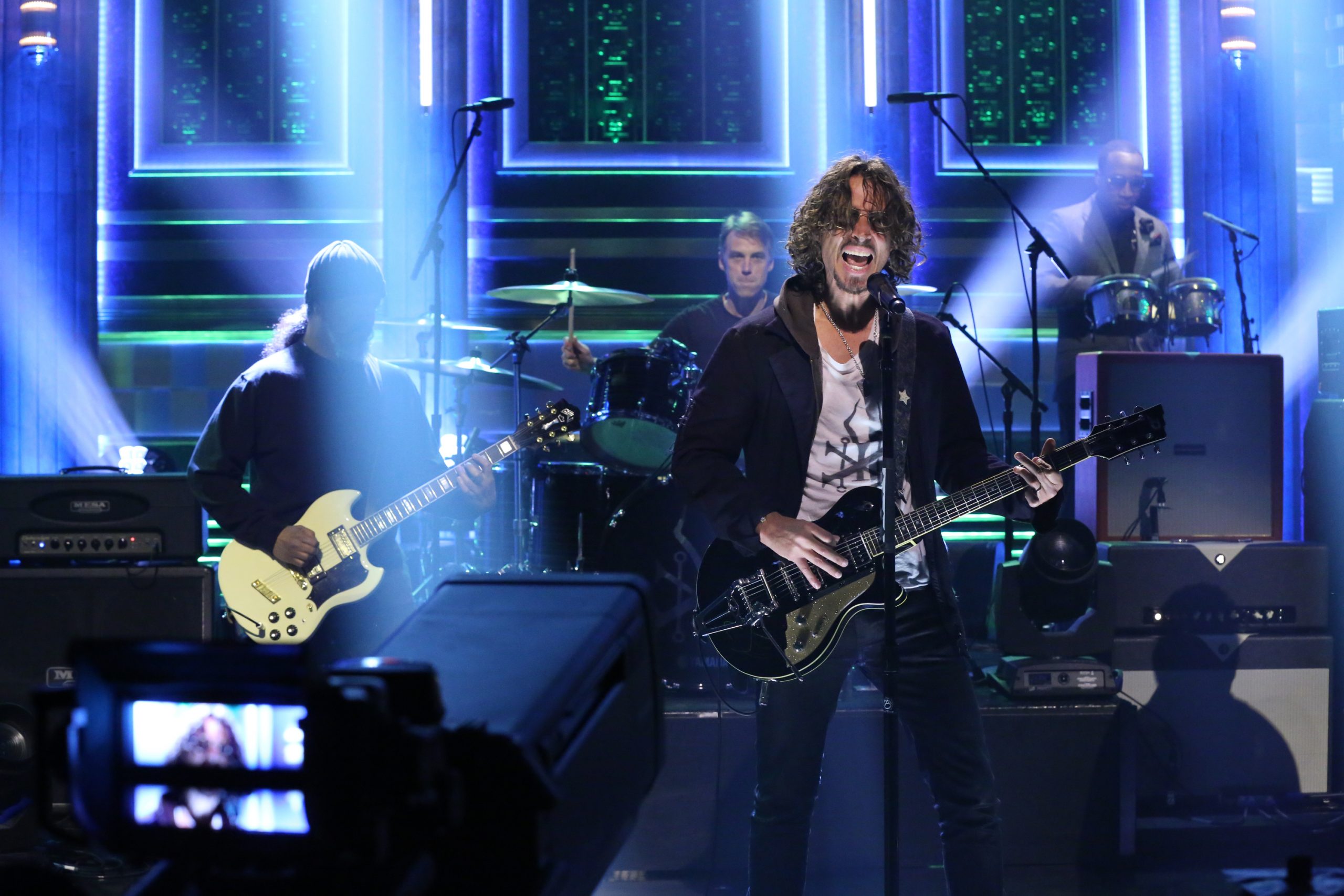 Soundgarden has been stretching out the Superunknown 20th anniversary celebration for many months, and that celebration continued last night on The Tonight Show in conjunction with the album's deluxe reissue. The band performed "Spoonman" (which Fallon rightfully dubbed a classic) for the broadcast and "My Wave" for a web exclusive. They also sat down backstage to explain how they wrote "My Wave." Watch all that below.