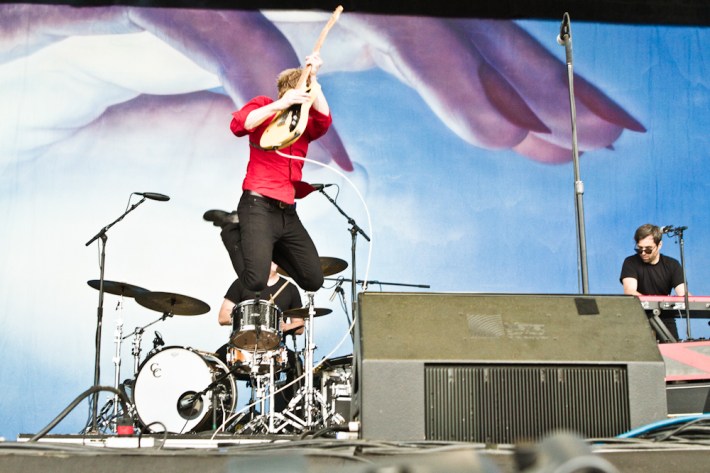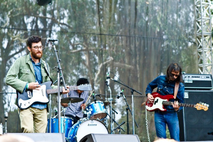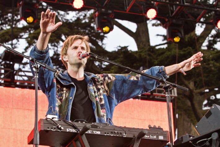CHRIS: He says his next record will be poppy, so I can't imagine he'll be putting on such a dark, delirious show next time around. I see these summer festival sets as a clearing of the slate. It's almost like he's tearing his aesthetic down so he can build it back up in the image of what's next. What remains for the meantime is his impressive discography, which, yeah, amounted to an awesome show. How astounding that the guy who made "All Falls Down" and "Touch The Sky" is the same one who made "Mercy" and "Blood On The Leaves"? There is almost no through-line in that music except the remarkable ego and imagination of one visionary dude. As anxious as I am for the next thing, he was right to make us marvel at where he's been before getting where he's going.Some people mocked Christopher Owens' new album cover when it was revealed. But why was that? It's an assortment of people of different genders, races, and ages standing and smiling. It's a cover with the same earnestness and sincerity that Owens was once praised for in his first band Girls. Those people in the A New Testament artwork are the very crew who crafted the new album, and many of them helped on the music that made Father, Son, Holy Ghostour favorite album of 2011. On the Sutro stage Saturday afternoon, we heard "My Ma," a volcanic rendition of "Forgiveness," and a full band "Jamie Marie" that began with Owens alone on stage. When he finished playing "Stephen" the deeply moving eulogy to his brother, Owens wiped a few tears from his eyes and thanked the audience for being there. He's still one of the greatest songwriters of this generation, and if it feels like he went away, don't worry, because he's come back with a whole new band that reminds us he never left. -MilesWhether Spoon ever lost their swagger is debatable. No swagger shortage Sunday, though! Just five guys playing indie-rock's equivalent of burgers and fries, and you better believe that's a compliment. Is there a more pleasing platonic ideal for American rock 'n' roll than Britt Daniel and the boys rollicking through a decade and change of unassailably approachable yet fearlessly experimental pop-rock nuggets? (OK, a full two decades' worth would be nice; here's hoping some A Series Of Sneaks and Girls Can Tell tracks work their way back into the mix someday.) Spoon ruled Outside Lands, plain and simple. Fuck an album title: They've got soul to spare, and shit yeah we wanted it. -Chris