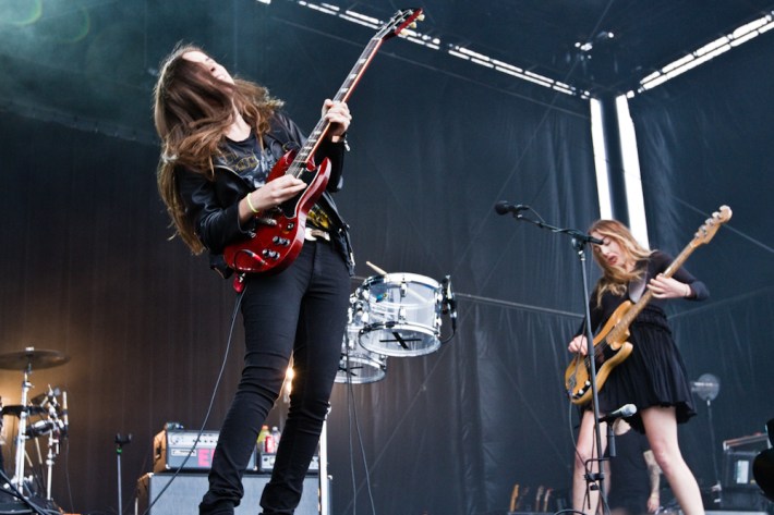 Certain bands simply don't work in the harsh light of day. Other bands -- bands like Woods -- seem to exist for expressly such circumstances. Although they used to lean a lot closer to the hallucinatory side of psych, indie-rock's preeminent Dead disciples spin out easygoing folk-rock jams that make an ideal soundtrack for early afternoon on a festival's final day, those hours when everybody just wants to chill out and recharge for one more day of revelry. That's not to say Woods are incapable of rocking out because believe me, when their penultimate song kicked into overdrive everyone in the vicinity stopped in their tracks and took notice, members of Lucius included. But those climactic moments were so striking in part because most of the performance was so idyllic, so very much like you'd hope and expect from a sunny afternoon in a San Francisco meadow. -ChrisMusgraves, the former teenage Nashville Star contestant turned Leader Of Country's New School, eased through the first half of her set pleasantly enough. Backed by men wearing blue nudie suits garnished with Christmas lights instead of rhinestones, she smiled demurely from under her floral crown and kicked her white cowboy boots into songs she wrote for her own great Same Trailer, Different Park and for fellow forward-thinking sassy lass Miranda Lambert ("Mama's Broken Heart"). Things really got cooking, though, for the last four songs. Musgraves and the boys burned through a cover of "These Boots Are Made For Walkin'," followed by a run through hit "Merry Go Round" with Musgraves on banjo that had the entire audience singing along. It seems that chronicle of small-town stasis is even more dearly beloved by Musgraves fans than her signature song, the clever do-it-your-way manifesto "Follow Your Arrow," which followed in quick succession. Then they all put down their instruments and gathered at the front of the stage for a short, sweet a cappella finale. This time the crowd fell silent, letting Musgraves and company transform the Golden Gate Park hillside into someplace much smaller and cozier. -ChrisNever in my wildest dreams did I expect to tell people I saw Sir Patrick Stewart, Professor X, Captain Jean Luc “Make It (Fucking) So" Picard perform Shakespeare at Outside Lands. My brain is still having trouble processing that it happened. Did somebody slip something in my drink? Did I fall asleep in one of the long food lines and dream it? No, ’twas real and the photo above proves it. Improvised Shakespeare was one of the most intriguing events at the fest’s comedy tent the Barbary and proved to be a major highlight. The Company asks for a name of an imaginary Shakespeare play and proceeds to perform it in the Bard’s style and language for a full 50 minutes or so. Since most of what they’re doing is in meter, you’re essentially seeing someone trying to be funny, keeping the plot moving, doing it in Shakespearean language, all while free-styling so it rhymes. It’s a remarkable thing, made even more so by the guest addition of Stewart who fit it in so well he could have passed for a regular. -MilesThe members of Lucius understand how music works, which should be enough, but you know and I know that great bands disappear into the recesses of infinite music queues every hour of every day. Fortunately for Lucius -- and for those of us who witnessed their Sunday afternoon set -- they also understand how entertainment works. From a pure compositional perspective, the songs of this Brooklyn quintet were astounding. They play pristine pop tunes that exist within some unprecedented hybrid of sighing Americana, soaring Motown, and shellacking post-Arcade Fire percussive fury. Every element was carefully planned, but executed without a care in the world. It's genius stuff, the kind of music where you think the wild vocal harmonies are the highlight until you think the sly, punchy guitar parts are stealing the show until it hits you that, oh yeah, that five person drum solo was a winner, too. As good as Lucius the band is, though, I don't know if they would have ever risen above the deafening clatter of infinite bands on the rise (some ancient civilizations used to call it "buzz") if not for Lucius the gimmick. They have a striking look -- two female lead singers who dress identically all the way down to their bobbed haircuts, backed by three males in matching suits and suave hairdos of their own -- and the costumes lend Lucius an air of fantasy that they never would have managed in street clothes. -ChrisAt this point, Haim should not have a set like this in them anymore. Sure, they could probably play it in their sleep, having trotted out these exact songs at festivals and concert halls worldwide for well over a year. But when you've been running through the same setlist for so long, how can it possibly be overflowing with this much life? Everything from the ragtag Shania-fied ballad "Honey & I" to the post-Sleigh Bells booty-dropper "My Song 5" still crushes, and when they burn through that same old Fleetwood Mac cover they've been doing for months (you'd think they'd choose a different cover at least), it still accelerates the melting of the polar ice caps. If the sophomore LP they're recording this fall is in the same ballpark, these ladies will be headlining fests this size soon. -ChrisAll DJ sets are not created equal. Some of them are as stupid as Tom Petty thinks they are, the tackiest bacchanals known to humankind, a genuine counterargument against whatever case you want to make about the progression of our species. Then there's A-Trak and Armand Van Helden in matching gold varsity jackets dropping the sickest records and emerging from behind the decks wielding Super Soakers, all in front of a giant inflatable waterfowl: a reminder that the dance party is a noble pursuit for fun-loving sentient beings. It was a rare convergence of killer showmanship and good taste. About those sick records, by the way: They saved their ow
