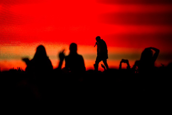 CHRIS: Compared to the Yeezus Tour performance I saw last fall, this was tame. It's Kanye West performing Kanye West music, so tame probably isn't the right word for it -- nor small, nor half-assed, nor uneventful. But in the context of Kanye, that's how this set felt to me. There was no mountain, no creepy sex druids, and no White Jesus. He didn't even properly rant! (Asking the crowd to form a circle pit is not a rant, and neither is the AutoTuned self-empowerment scatting that comprised the bulk of "Runaway.") It was minor Kanye -- which, again, is still Kanye. This was one of the greatest musicians of my lifetime performing some of his finest songs. I'm just spoiled, having witnessed some of his most fantastic spectacles of the past half-decade. I think I'm just ready for the next iteration of Yeezy -- not just the new album that's allegedly coming in a few months, but a whole new production design, new videos, the whole ordeal that accompanies everything Kanye has ever put his heart into. This set felt like a placeholder, like I was flipping through re-runs of last season. That said, re-runs are as good as new if you didn't catch them the first time around. What about the show captivated you, Miles?