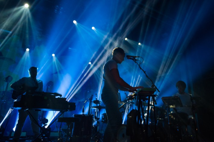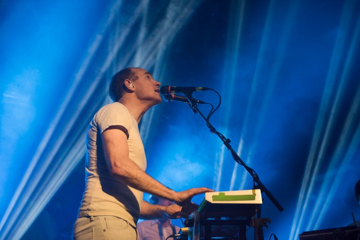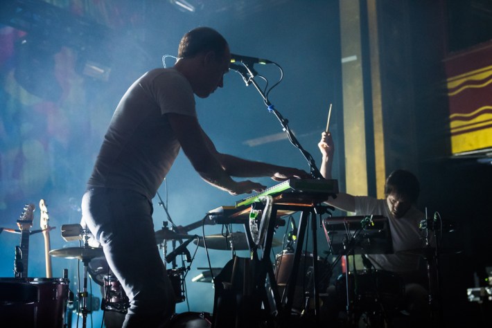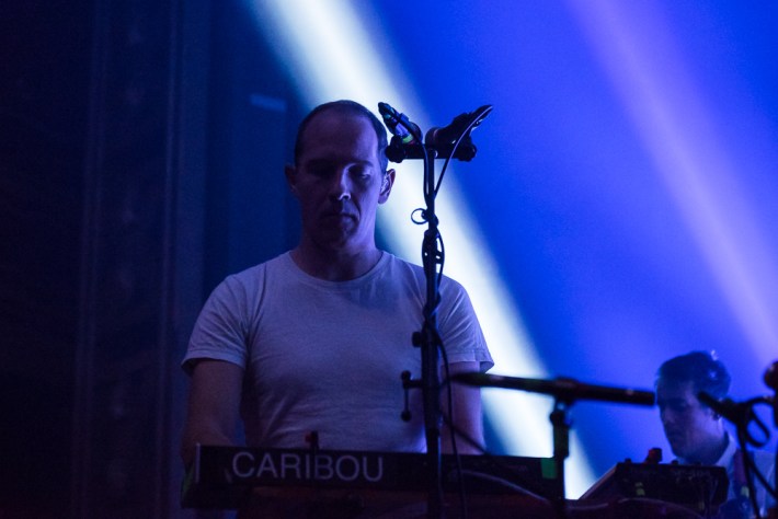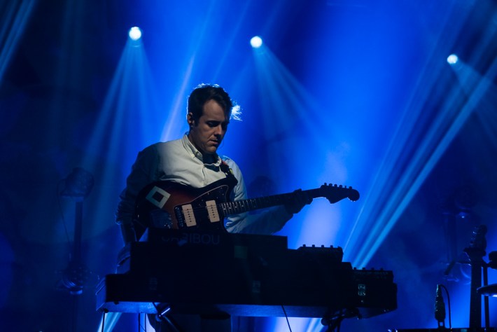 The setlist, which doesn't vary too much from show to show, is almost perfectly calibrated so that these new songs sit comfortably amongst older favorites. The one two of "Our Love" and "Silver" is a bit of a slow-burn rise to the show, leading up to "Bowls" a few songs in, the sprawling, visceral climax to the first arc of the show. (In between, there was one of the surprises of the show—"Leave House," one of my favorite tracks off Swim, which makes less frequent appearances in Caribou sets this year.) They bring "Jamelia" in as a spectral meditation mid-set, and after that it feels like the show just builds and builds until it's over. "Odessa" shows up late set and people lose it, there's a pseudo-breather with "Your Love Will Set You Free," and then "Can't Do Without You" closes the main set. I love seeing a band play a new song and have it garner the sort of reaction "Can't Do Without You" already does. They play it there at the end of the set, and people treat it like it's already an old song absolutely beloved by fans. The reaction is probably more intense than even the one to "Odessa." After that, there's "Sun," the single but epic, increasingly multi-parted workout that stands alone in the encore.