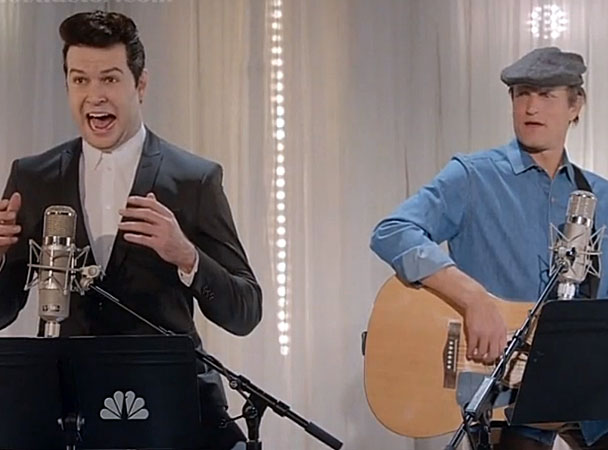 Earlier in the show, Woody Harrelson's monologue was a sung tribute to 1989 (the first year he hosted) with plenty of Taylor Swift references.