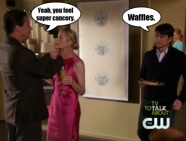 Serena does want a relationship with him, though, and she tries to impress him by telling him about an award she got at school for drinking all the hot cocoa. Uh, what? I mean, as we know, she didn't win an award for drinking all the hot cocoa, she got an award for blowing the most dudes, but STILL. At this point you have graduated from high school, and your father is an estranged millionaire celebrity doctor with a secret nefarious scheme to win back your mother. COCOA AWARDS ARE NOT IMPRESSIVE. Under any circumstances really. Of course, Jenny tries to trip Serena up by getting her to admit to William that she has genital AIDS or something, and Serena gives her the dirt eye. But also, really, Jenny? I mean, I hate Serena, too, but are you really going to sell her out in front of her dad? Who she just met? Shame on you, Jenny, and shame on your wig.