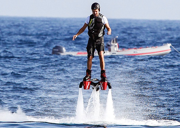 The 38-year-old actor, who once played an aviator on the big screen, proved he could fly in real life when he hopped on a Flyboard in Ibiza on Wednesday.