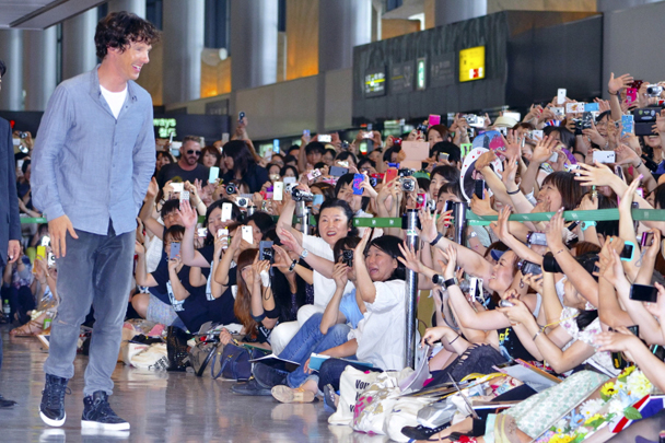 Benedict Cumberbatch is greeted by hundreds of adoring fans as he arrives at Narita International Airport Featuring: Benedict Cumberbatch Where: Narita, Japan When: 15 Jul 2013 Credit: Kento Nara/Future Image/WENN.com **Not available in Germany, Poland, Russia, Hungary, Slovenia, Czech Republic, Serbia, Croatia, Slovakia**