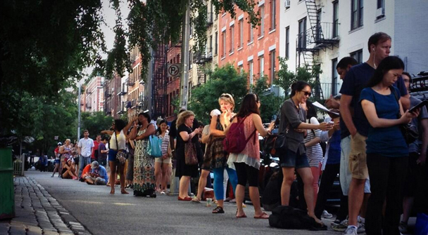 Cronuts! Donuts made out of croissants! This summer, New York City has gone cuckoo for cronuts. The picture you are looking at is of the line of people outside of Dominque Ansel's bakery waiting for cronuts, and it was taken at 6:45 this morning. People scalp cronuts on Craigslist, and offer sex in exchange for them. It's a whole THING. They finally made it into the Hollywood Reporter today, which asks if cronuts have the enduring power of the mighty cupcake. Fun question. Powerful and important question. The Hollywood Reporter is truly the paper of record for Hollywood because the article includes this observation: "Cronuts are hardly the first food craze, as anyone who has swirled a fondue fork in the '70s will tell you, but they are in many respects a unique phenomenon." CRONUTS ARE HARDLY THE FIRST FOOD CRAZE, IT TURNS OUT. The question now, though, is not whether or not this is the first food craze because I just asked someone who had twirled a fondue fork in the '70s and they said that it wasn't, but rather who will play the lead cronut in the movie about cronuts*?! Kristen Bell? Jaden Smith? Justin Theroux? Gabourey Sidibe? WHO?!