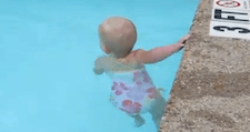 I am not a parent. I have no idea the age at which you should let your baby swim in the pool without swimmies and a lifejacket and you in the pool with them, holding onto their bodies, with you also in a lifejacket. Is it 15? What is the legal baby alone swimming age? 18? 17, but only if they take a certain amount of swimming lessons from the local YMCA? 16, but you can only swim in a shallow above-ground pool that is filled only halfway? I just don't know! The fact is that I am not a cop and I haven't looked into swimming licences in ages. The baby you're about to watch in this video is well below what I believe to be the legal swimming alone age (between 15 and 20, let's say), but that does not take away from the fact that she knows exactly how to do summer, and she is doing it right. Swimming in a pool, for one. Taking some chances, accomplishing some leisure goals, having parents that are pretty chill and relaxed, wearing an adorable outfit. She is doing it. We are not doing it. We are inside and we are at computers and probably we wouldn't even be able to swim very well if you threw us in a pool right now, and probably last time we were at the beach we got knocked over by a wave and it was very scary and a friend had to help us, but she is doing it.