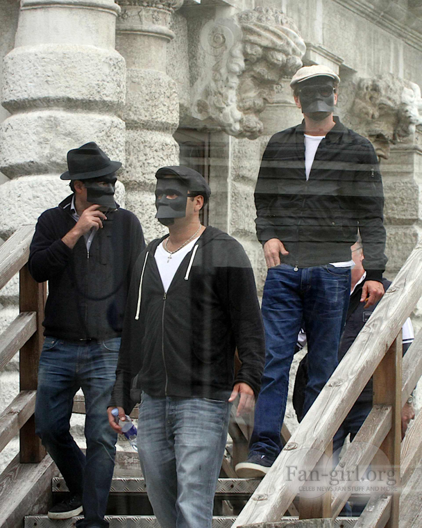 Hahaha. AHHHHHHHHH. These photos come from ONTD where there is SOME kind of explanation for what is going on here, but is an explanation really necessary? It's Leonardo DiCaprio and ranking Pussy Posse (gross, sorry) consigliere Lukas Haas wearing some wack Sleep No More masks on their way to what is clearly going to be the best Eyes Wide Shut prostitute-murder party of the year! But first: PIZZA PARTY! Gahhhhhh. That pizza picture is almost better than the Pussy Posse (gross, sorry) picture, but not quite. Because the Pussy Posse (gross, sorry) picture is very special. HI BOYS! The new Mister Cool Disguises, to be sure. An easy title to get, a far trickier title to hold onto. Ask Gary Busey and Alec Baldwin. I love that Leonardo DiCaprio is wearing sunglasses over his spooky mask. SORRY, MAN. You still got RAZZI'D! That's the tricky thing, you know? The horrible, horrible masks should be enough to fool the civilians, especially since Tha Boyz are in Venice, Italy, and everyone's too busy drinking their venti caramel macchiatos to notice a celeb, because that's where venti caramel macchiatos were invented. But because Tha Boyz are out to have fun and get some puss-ay (gross, sorry, but the truth is gross sometimes) Leo decided to throw some cool shades on over the mask to throw the paparazzi off the scent (as if you can't smell the Pussy Posse a mile away HOW MANY TIMES CAN I SAY THAT I AM SORRY. THIS IS MY LIFE'S WORK AND I MUST DO IT) but Leonardo DiCaprio made a fatal error. He forgot that Venice, Italy, is known for inventing two things: venti caramel macchiatos and PAPARAZZI. So now the very people he put the sunglasses on to fool are the same people capturing him looking like a fool in their long lens candid shots. Luckily for Leo and the rest of the Pussy Posse (gross, sorry) no one cares what you look like at the Eyes Wide Shut party as long as you know the password, and you KNOW that Leo knows the password. He invented passwords. What's latin for pizza? No, that's the whole password, "What's latin for pizza?" Creaky door slowly swings open. Dark sex happens.