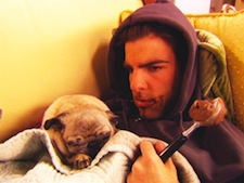 - Zachary Quinto pouting and eating ice cream with a pug. -BuzzFeed