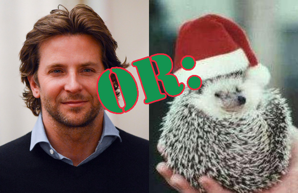 I get it, man. As someone whose thinning hair has caused him plenty of unexpected stress because when he was a teenager he did not think that he was invincible the way that some teenagers do and in fact thought it was all too likely that he would get killed in some dumb way like a stray baseball would hit him in the head or maybe a car would roll off the back of one of those trucks on the highway that carries all the cars and crush his face into a facemeat pancake, he did however think that his hair was invincible because that shit did not give up, no matter how hard he tried. And now look at him: succumbing to the ravages of time just like every other poor sap. But here's the thing: GET OVER IT, BABY BRO! For one thing, uh, you have so much hair in all of your photos. You look great. Very sexiest. But also, just, like, remember that there's other stuff going on in the world, you know? Susan Rice had to withdraw her nomination for Secretary of State yesterday over the Benghazi thing, which will at least shut some very annoying people up, but also seems kind of lame, and is certainly more upsetting on a personal level than, like, a super duper vain thing that is embarrassing to even hear as a rumor much less admit out loud. You know what I mean? The East Coast is still suffering from hurricane Sandy and will be for months more. 20 percent of the world's population continues as it has for decades to not have access to clean drinking water. The middle east is an impossibly violent mess, as usual, but also more than usual actually. But then going back to you: you're living your dream of being a movie star and beyond that you're even relatively well respected all things considered, and it's a dream that you knew from the beginning could be fleeting even if you got a hold of it, and it hasn't even fled you, so just chillllllllll. With all of the things that are coming down the pipeline for all of us, even the luckiest of us, in terms of losing loved ones, having hearts broken, contracting illnesses, this is going to prove to be, like, the least of your worries, buddy. So here's the deal I am offering: we can either keep talking about this, or we can exchange photos of different animals dressed like Santa. That is an offer to the readers, yes, but it is also an offer to Bradley Cooper himself. Do you want to make yourself sick with worry about a thing that is not even a fucking thing, or do you want to look at those cute little guys with the true holiday spirit? Up to you, lunatic(s).