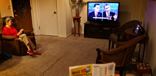 And so here we are. No more debates! That's it! In the words of Chuck-E-Cheese, that's-that's-that's-that's-that's-all-guys! Did you watch it? I had the flu all day yesterday and I still have almost as much of the flu today actually, but there is nothing that soothes the aching, shivering body like a rigorous debate about foreign policy. LOL. Obviously, the most memorable line was the thing about horses and bayonets. That's a good line! All the sitcom writers were at home high-fiving. Otherwise, I don't know. Romney used the word "tumult" so many times you might think he was sending coded messages to an Abu Nazir sleeper cell. What was that all about? He learned one big SAT word and hell if he wasn't going to get his money's worth out of the Kaplan prep team! The big story yesterday was how the national polls show Obama and Romney in a dead heat, with 47% of the vote each. Oh perfect! I know that everything is always the same as it ever was, but it does feel like over the past, say, 12 years, things have gotten increasingly fractured in our political system and all that Americans want is for someone to come in and wave a magic wand and make everything perfect, as if that is even an option. Admittedly, in 1968 they beat children in the street during the Democratic National Convention, so what do any of us even know. The important thing is for these undecided voters to decide. Take your time, please! Does this help? This? How about this? Does this? I just want you to make up your mind so bad! (Image via NewYorkTimes.)