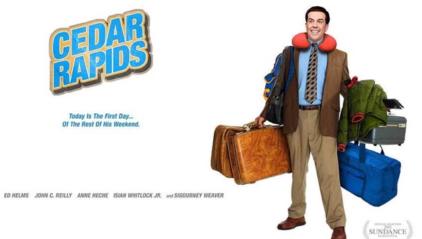 The best way I can describe Cedar Rapids, the wonderful new comedy by not-for-everyone director Mike Arteta (The Good Girl, Youth in Revolt), is to say it’s like Happy-Go-Lucky for guys. From me, that’s a compliment. Maybe a better way to describe it would be 40yo Virgin meets Election? Or Up in the Air for non-assholes? Office Space meets Ugly Betty Season 1? Ugh, I’m no Hollywood adjective hag, but trust me, it’s good. Really good. Not like 100% AMAZINGPERFECT, but it’s damn close. DAMN close. At a light-and-punchy 87 minutes, it tells the story of Tim Lippe (Ed Helms), who takes his very first trip away from home to a Christian-flavored insurance-salesperson conference in Cedar Rapids, only discover the pain and ecstasy of life outside the nest. If you’re gagging on my twee-nis right now, I understand. But when something’s done right, it’s done right.