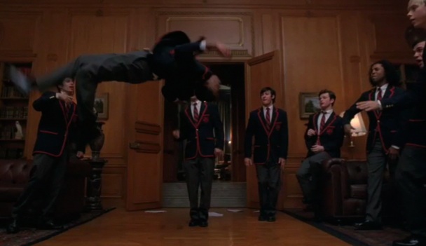 Then we’re off to Delicious Boymeat Academy, FINALLY. Oh, to be a fly on the wall during the meeting to decide exactly what percent of the Super Bowl episode was allowed to be about Kurt… We jump right into an a capella version of “Bills, Bills, Bills” by Destiny’s Child (FINALLY), with Blaine as a young Beyonce:
