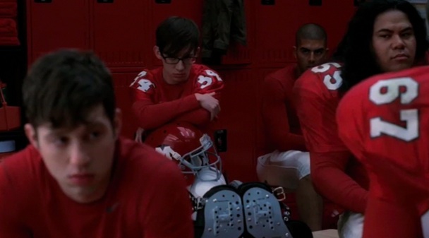 And then at the game all the girls just lie down on the ground so no one touches them? (That’s my best cruising trick!) But then Tina picks up the ball and runs with it until she gets tackled, and everyone thinks she might be hurt but she’s not? And then Finn gets Quinn, Santana, and Brittany to quit Cheerio’s? And Puck makes sure all the FOOTBALL BULLIES will scream with Nude Erections during the halftime mashup? And then everyone screams the mashup together?