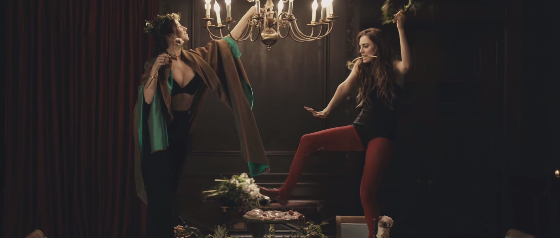 As much as I love the Brontë sisters, the mansions of their Victorian-era moors aren't a place that anyone would ever dream of escaping to. They're haunted and glum, and if you're a woman, totally oppressive. Whether or not it takes place in England, Ryn Weaver's new video for her massive 2014 summer single "OctaHate" features the singer wreaking havoc on the likeness of one of these massive, seemingly abandoned homes. She rushes into the central ballroom with a friend in tow, before they dance atop the table of an exquisite banquet. Weaver's forthcoming album is titled The Fool, which makes the closing scene's absurdity and resemblance to Alice In Wonderland's Mad Tea Party all the more pertinent.