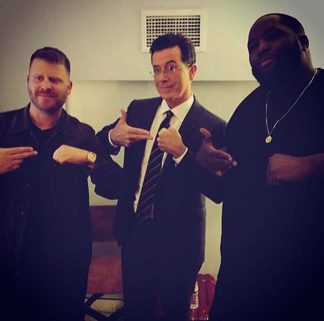 The week that they released their astonishing RTJ2 album, Run The Jewels gave an intense, triumphant performance of "Early" on Letterman. And now that the Late Show has a new host, they returned to that stage to do whatever they could to top that last performance. They might've pulled it off. TV On The Radio, along with a full string section, stood in as RTJ's backing band, creating this immense wall of decaying beauty on "Angel Duster" and generally putting an already-huge song over the top. It was quite a spectacle, and it's very cool to see all these guys finding ways to push themselves and do amazing things on such a big stage. The fact that Stephen Colbert can host a performance like this so soon into his run says good things. Watch the performance below.
