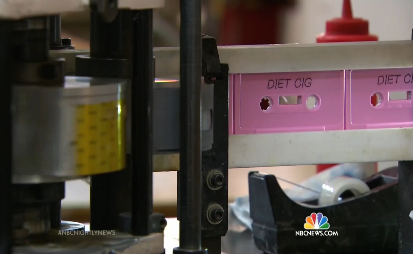 Compared to the vinyl revival, the cassette revival is a mere blip on the radar: A bunch of underground bands putting out small-run EPs on tapes that only a few of their fans have the equipment to listen to anymore. But the revival is still strange enough that NBC Nightly News devoted a segment to it last night, focusing on a Springfield, Missouri-based tape manufacturer that calls itself the National Audio Company. NBC reports that the company "sold more than 20 million of cassette tapes, the most in its history." That seems both crazy and unlikely. But even if that claim leaves me scratching my head, it's still fun to watch the report, with all these small-company types talking about how they bought up all the old tape-manufacturing machinery when every other pressing plant gave up on them. Company president Steve Stepp says his company owes its success to "stubbornness and stupidity" but also "the warmth and presence in an analog recording," and we get to see a whole bunch of Pepto Bismol-pink Diet Cig tapes being run through the machine. Watch the segment below.