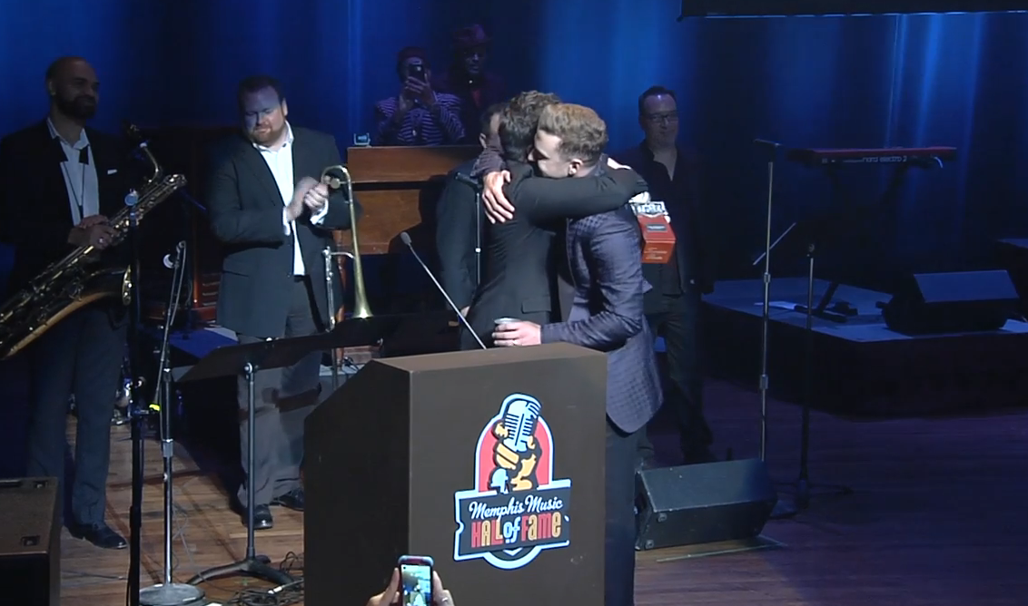 Memphis-born pop legend and record producer Justin Timberlake was inducted into the Memphis Music Hall of Fame on Saturday by none other than longtime collaborator Jimmy Fallon. "Who better to induct him than me, Mrs. Justin Timberlake?" said Fallon before presenting Timberlake with the award. The two are known for collaborating in sketch comedy on both Saturday Night Live and The Tonight Show; most recently, they continued their "History of Rap" series. After his acceptance speech, Timberlake performed Otis Redding's "(Sittin' On) The Dock Of The Bay" with another Memphis Music Hall of Fame inductee, Sam Moore. Timberlake has won nine Grammys throughout this career, including some for songs off 2014's The 20/20 Experience. Watch the ceremony and performance below.