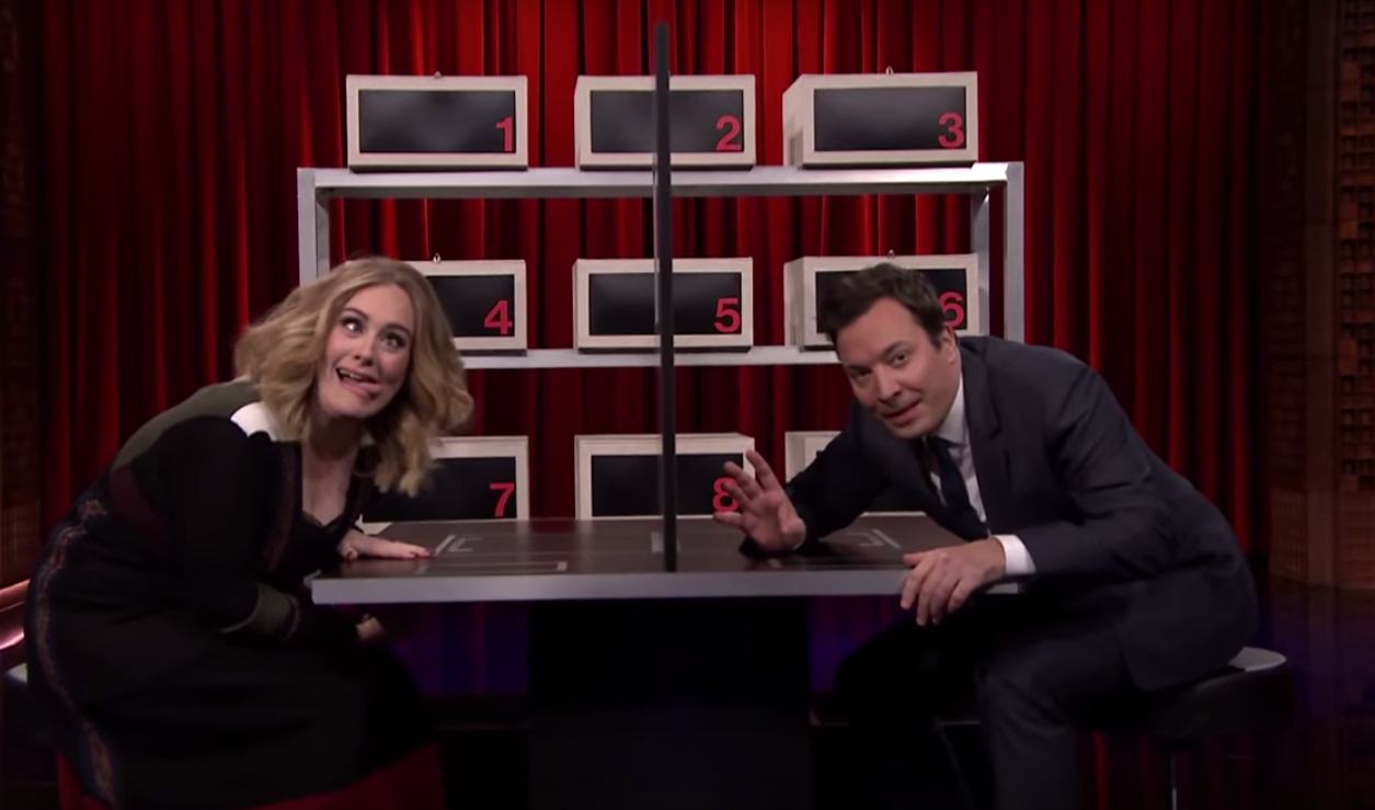 Adele continued her media saturation campaign Monday, following up her SNL appearance by basically taking over NBC's other famous late-night franchise. On The Tonight Show, she sat down for an interview with Jimmy Fallon, faced off against the host in a game of Box Of Lies, and --much to fellow guest Kelly Ripa's delight -- performed 25 track "Water Under The Bridge." During one of the interview segments, Adele reiterated her impatience for another Frank Ocean album, but hey, by Adele's standards, Ocean's LP isn't even really late. (By his own standards, sure.) Submerge yourself in Adele #content below.